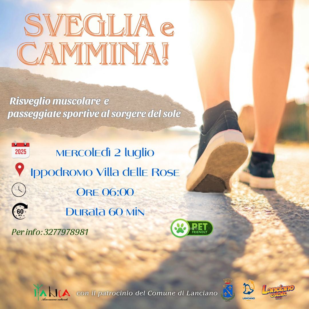 Risveglio muscolare e passeggiate cardio al sorgere del Sole dalle ore 06:00.